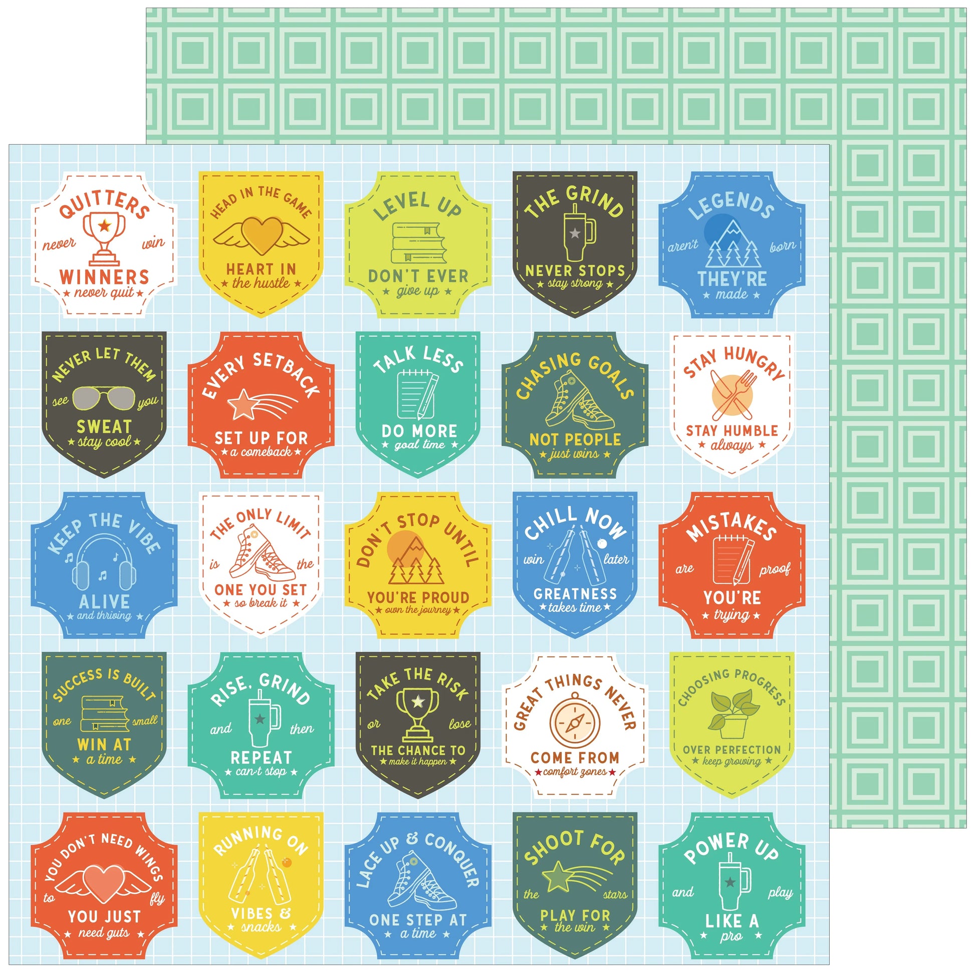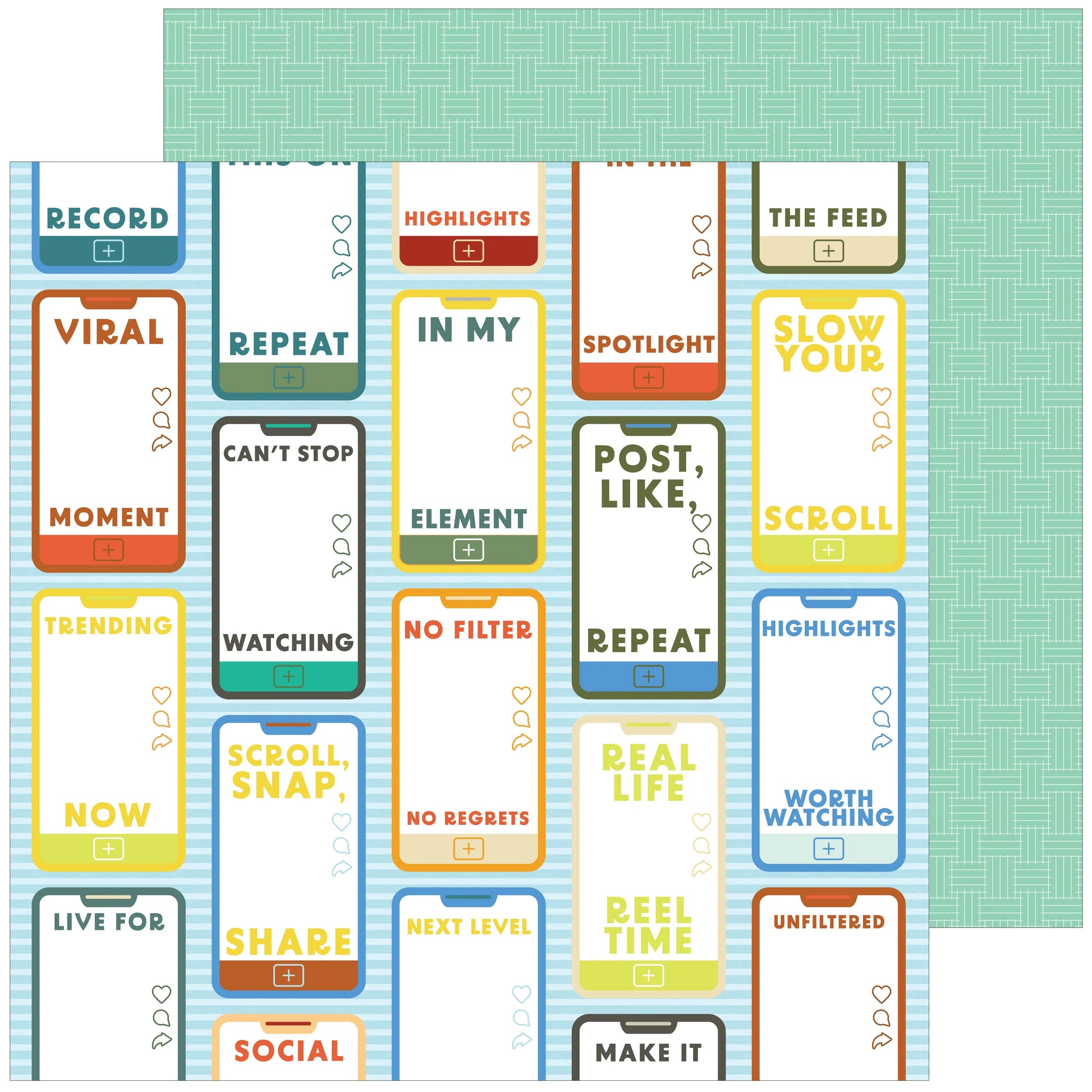 This paper pack contains 12 double-sided 12” x 12” patterned papers featuring a unique design on each side. Printed on 80-lb smooth cardstock with a matte finish. Archival quality, acid-free. Printed in the USA.